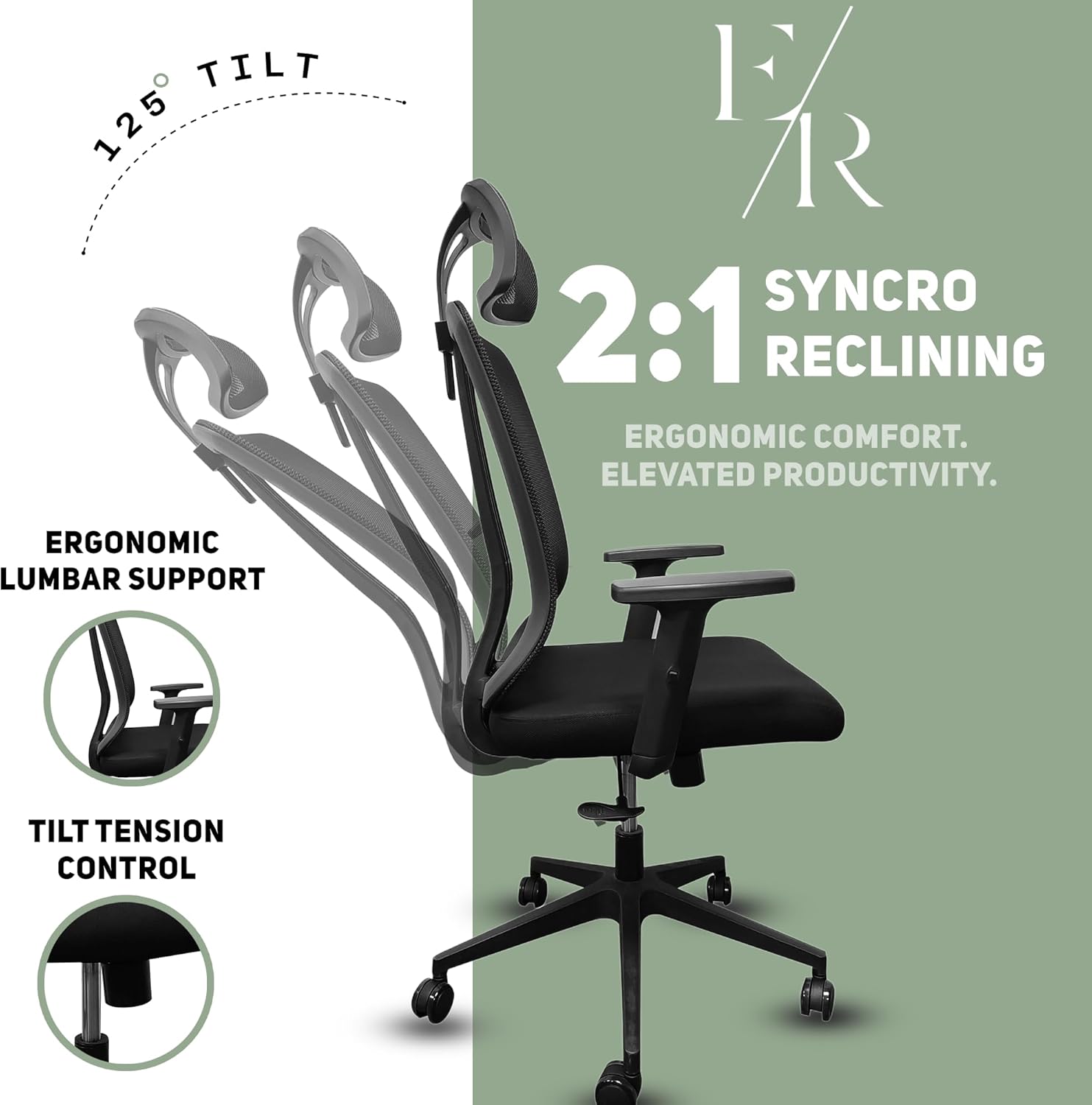 مسند للرأس وظهر طويل: يتميز كرسي المكتب المتميز Ella Rhae بمسند للرأس لدعمك طوال يومك.