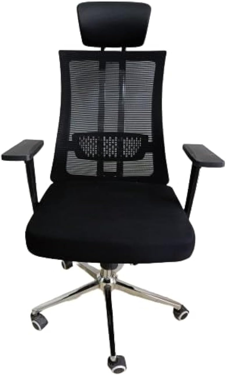كرسي مكتبي مريح بتصميم عصري يجمع بين الراحة والدعم الجيد للظهر. فيما يلي وصف تفصيلي له: اللون الأساسي: أسود مع لمسة خلفية باللون الأحمر اللامع. الخامة: شبكة تسمح بتهوية جيدة وتمنع التعرق، مع هيكل بلاستيكي متين. مسند الظهر: تصميم مريح يدعم الفقرات القطنية بوضوح مصنوع من شبكة مرنة لتوفير راحة وتوزيع جيد للوزن. مسند الرأس: قابل للتعديل في الارتفاع والميل. مصنوع من نفس خامة الشبكة لتوفير تهوية وراحة. المقعد: واسع ومبطن بخامة شبكية مريحة تسمح بالتهوية. امكانيه التحكم بالمقعد عن طريق ازاحته للامام والخلف لتوفير اكبر قدر من الراحه. مزود بآلية رفع وخفض هيدروليكية للتحكم في الارتفاع. مسند الذراعين: قابل للتعديل في الارتفاع لتناسب مختلف أوضاع الجلوس. القاعدة: قاعدة معدنية أو بلاستيكية قوية بخمسة أرجل. مزودة بعجلات مزدوجة بتفاصيل باللون الأحمر، توفر حركة سلسة وثابتة على الأرض. 💺 الاستخدام المثالي: مناسب للمكاتب، العمل المنزلي، أو جلسات الكمبيوتر الطويلة، حيث يوفر دعمًا ممتازًا للظهر والرقبة ويساعد على الحفاظ على وضعية جلوس صحية.