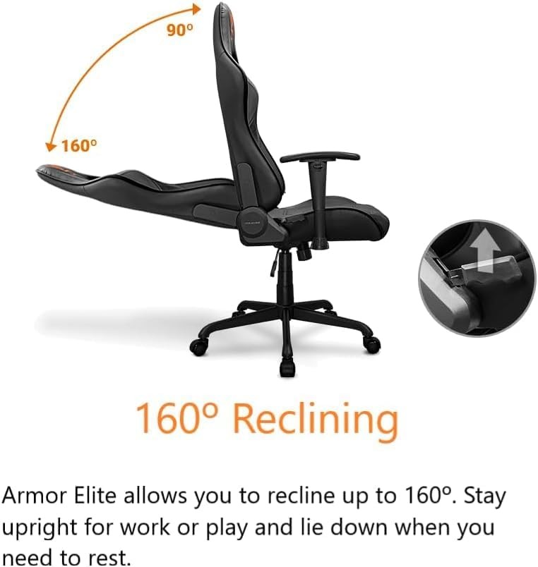 تعديل ارتفاع بآلية الرفع: يتيح لك رفع المكبس عالي الجودة ضبط ارتفاع كرسي ارمور اليت بسهولة. زاوية إمالة قابلة للتعديل: يتيح لك المقبض الموجود بشكل خفي أسفل ارمور ايليت ضبط مستوى المقاومة ومقدار الإمالة الذي تحتاجه. يمكن تكييف كرسي ارمور اليت وفقًا لاحتياجاتك من خلال العديد من الميزات. إمالة 160 درجة: يسمح لك كرسي ارمور ايليت بالاستلقاء حتى 160 درجة. ابق في وضع مستقيم للعمل أو اللعب والاستلقاء عندما تحتاج إلى الراحة.