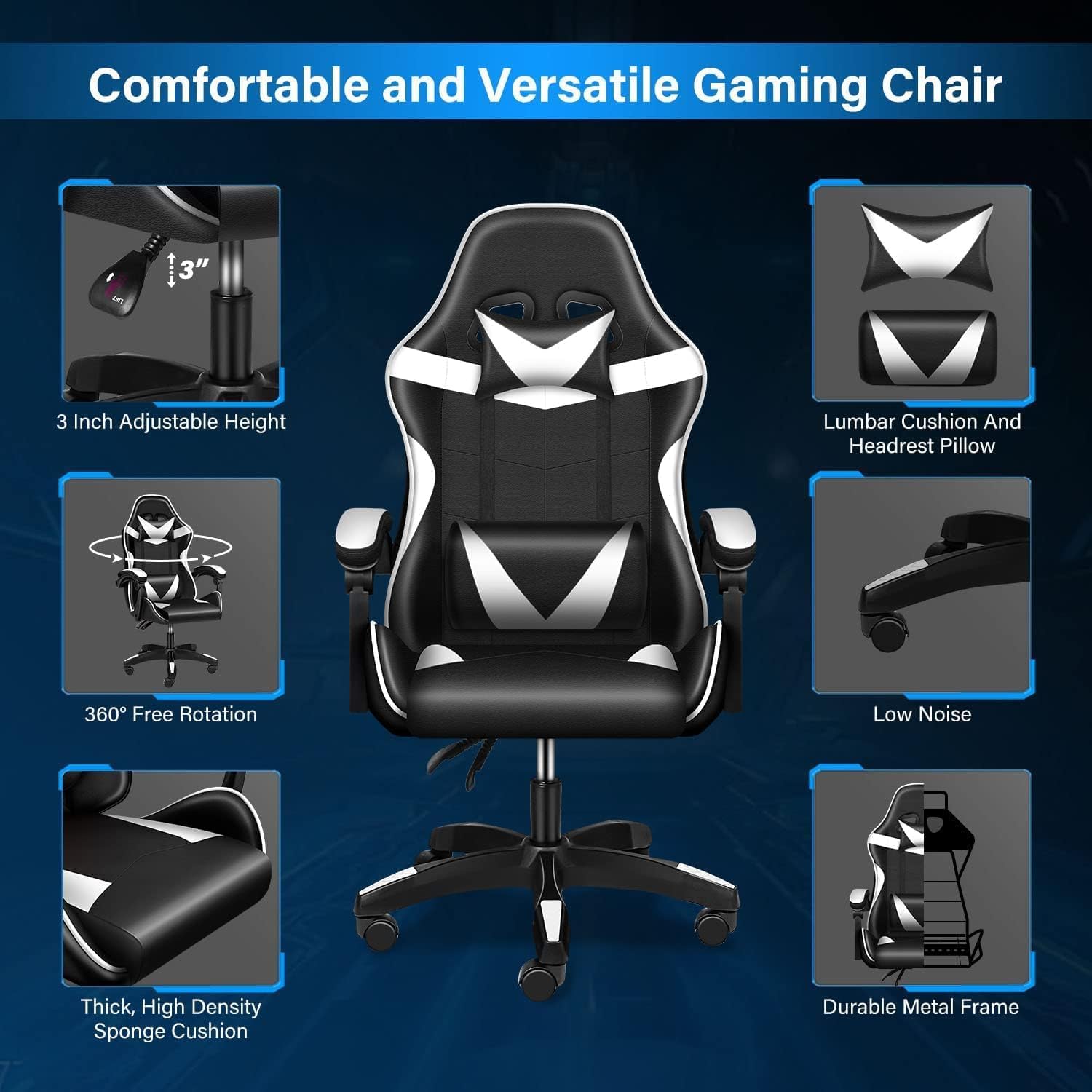 【متعدد الوظائف】مزود بمسند رأس قابل للإزالة ووسادة تدليك أسفل الظهر، كما يتميز كرسي ألعاب الكمبيوتر بدوران 360 درجة، وتعديل الارتفاع 4 انش، ومسند ظهر قابل للإمالة من 95 درجة إلى 135 درجة. تتيح لك الوظيفة المثالية تجربة الراحة والاسترخاء سواء كنت تعمل أو تلعب الألعاب.