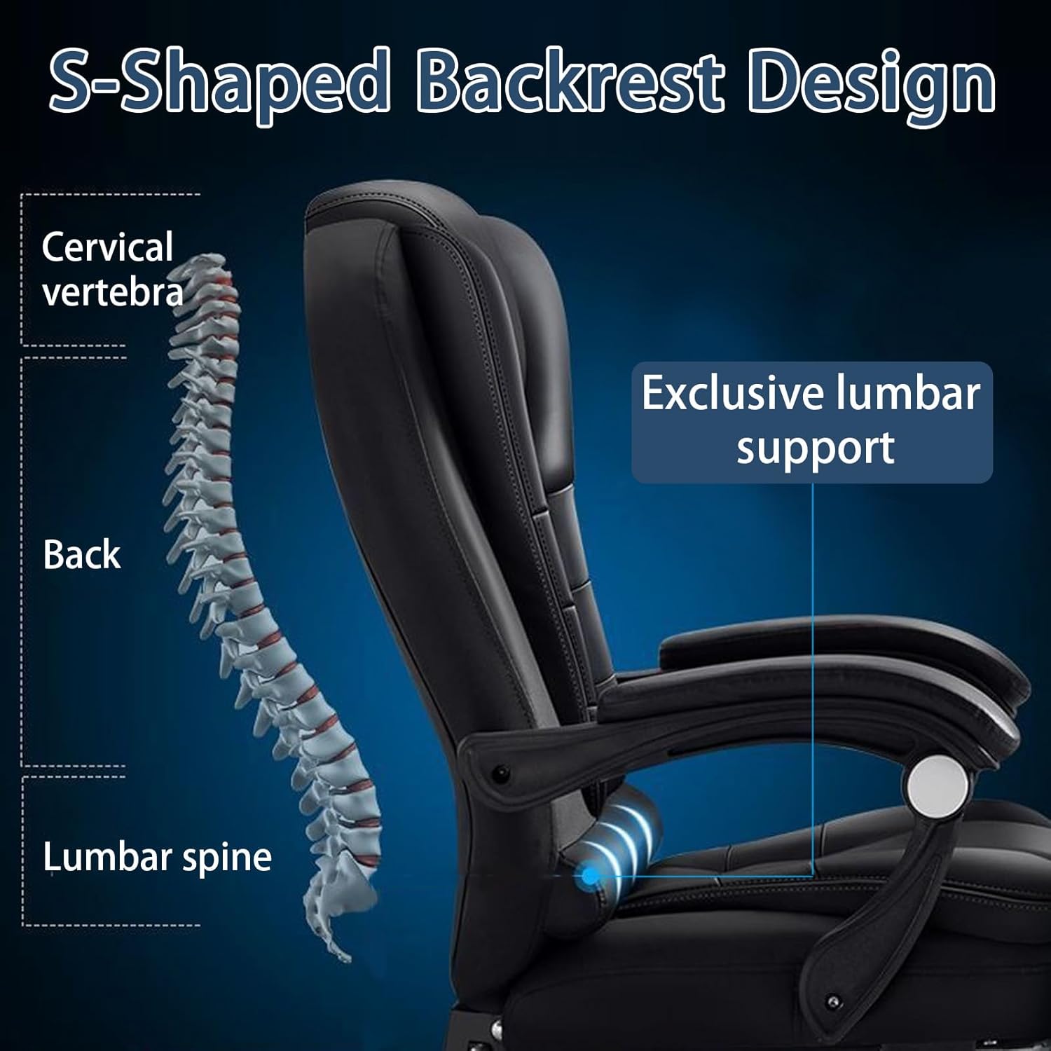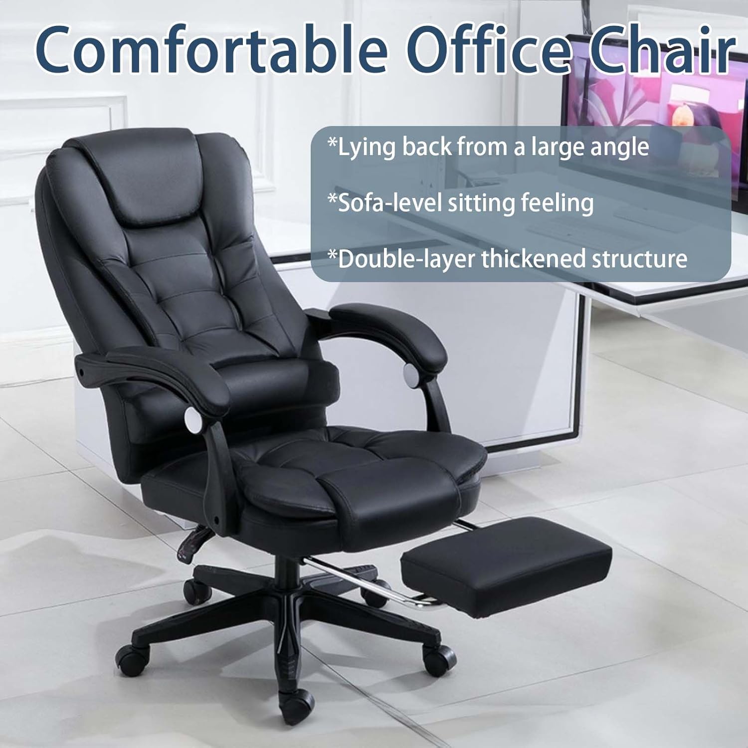 【راحة ممتازة】يعتمد كرسي الكمبيوتر الخاص بنا تصميمًا مريحًا للغاية مع مسند ظهر مزدوج الطبقات على شكل حرف S ومقعد عريض، مما يوفر راحة ودعم ممتازين لساعات طويلة من العمل المكتبي. قل وداعًا لآلام الظهر والتعب!